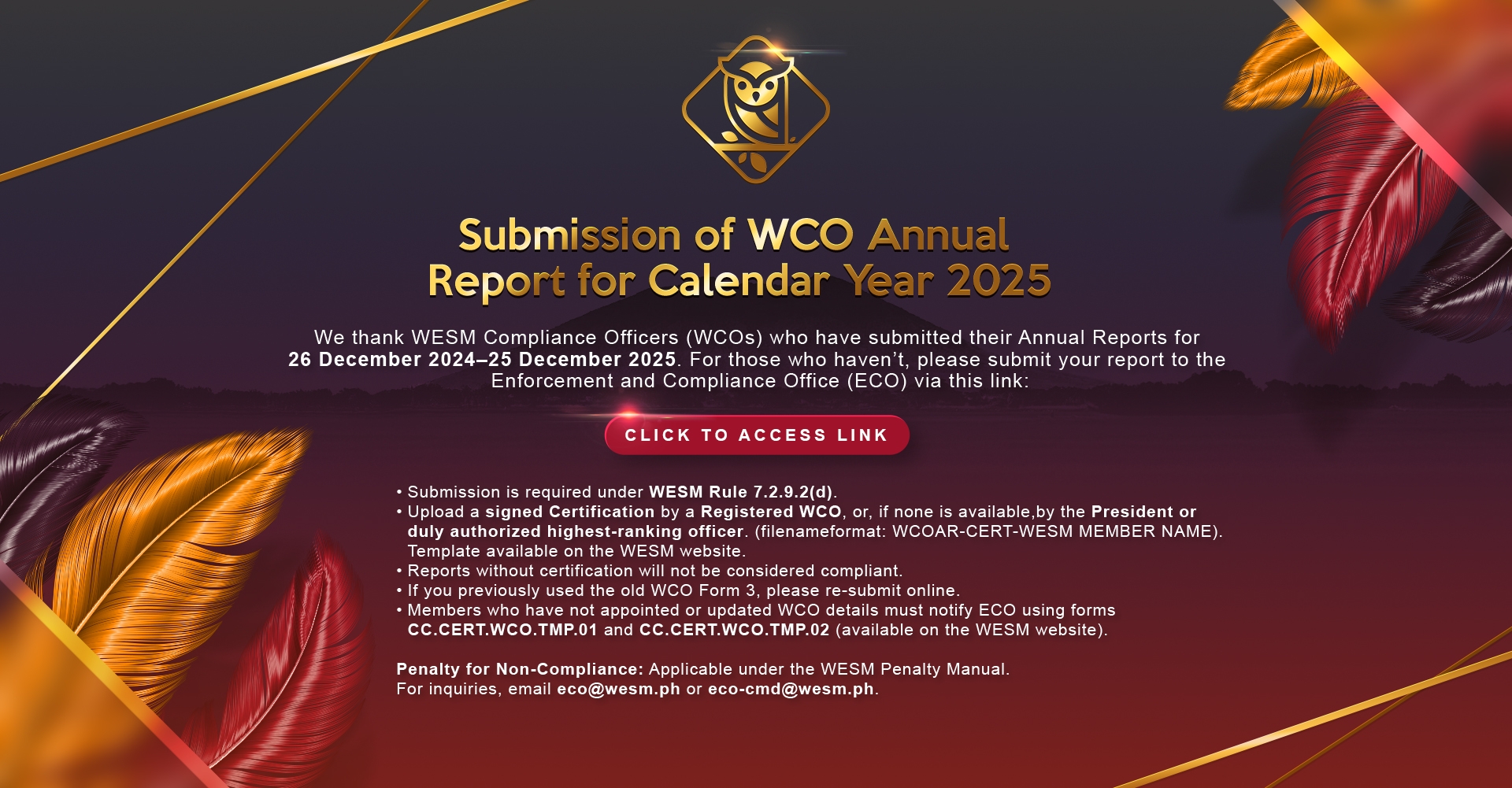 The Philippine Electricity Market Corporation (PEMC) governs the Wholesale Electricity Spot Market (WESM).