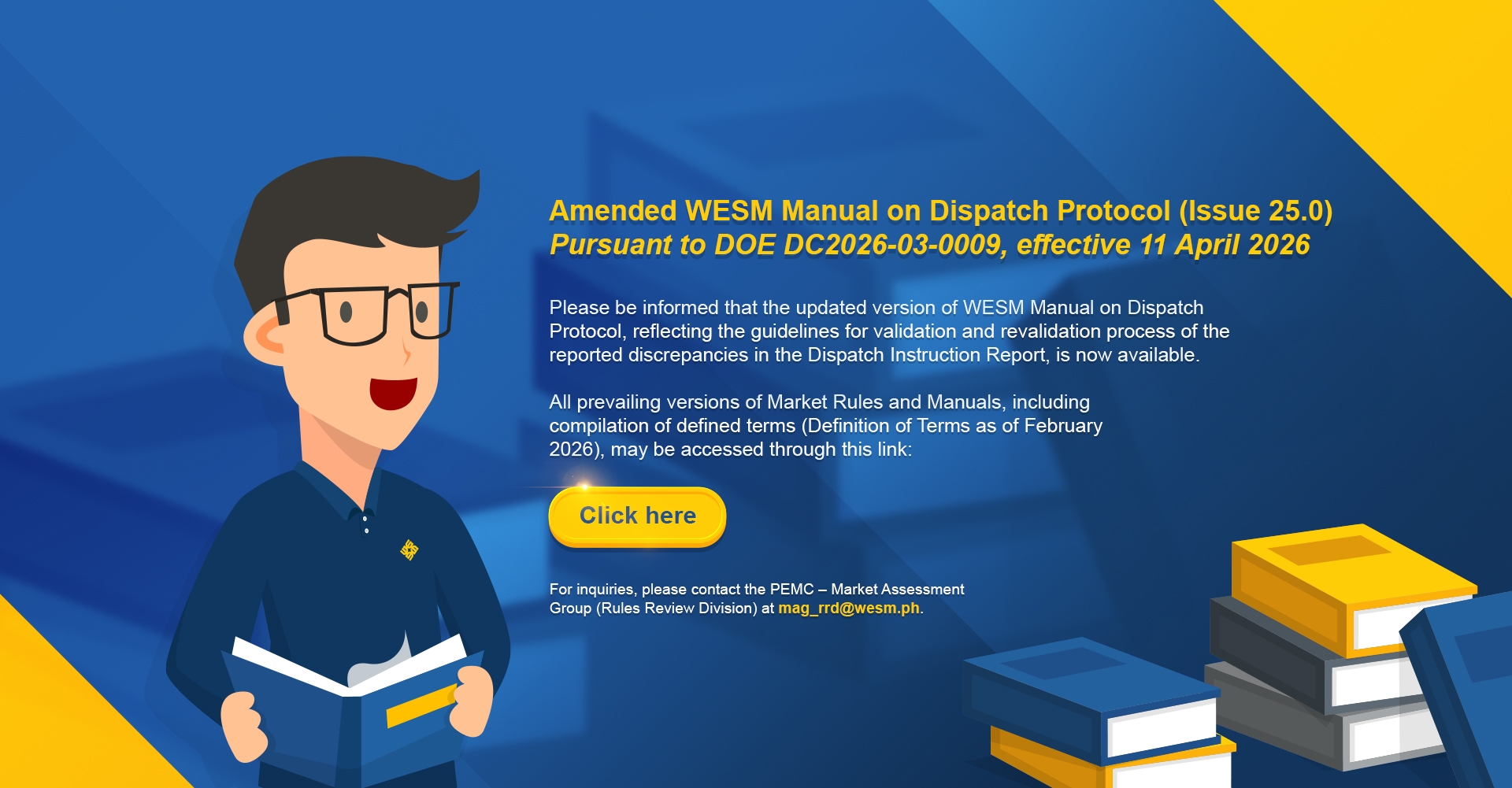 The Philippine Electricity Market Corporation (PEMC) governs the Wholesale Electricity Spot Market (WESM).
